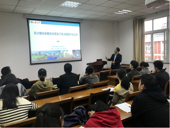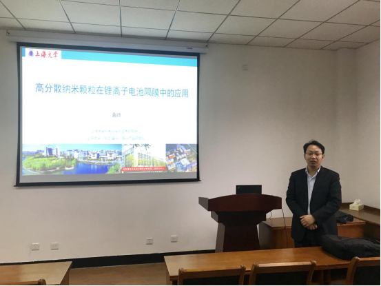 11月12日下午,在梁林校区1号楼506学术报告厅,上海大学嘉兴先进产业研究院常务副院长袁帅教授来博彩app 作题为《高分散纳米颗粒在锂离子电池隔膜中的应用》的学术报告。