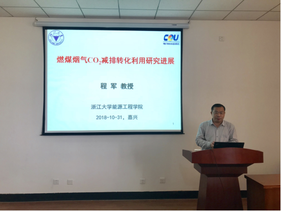 1031日下午,浙江大学能源工程学院求是特聘教授程军来博彩app 作题为《燃煤烟气CO2减排转化利用研究进展》的学术报告。