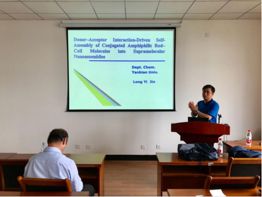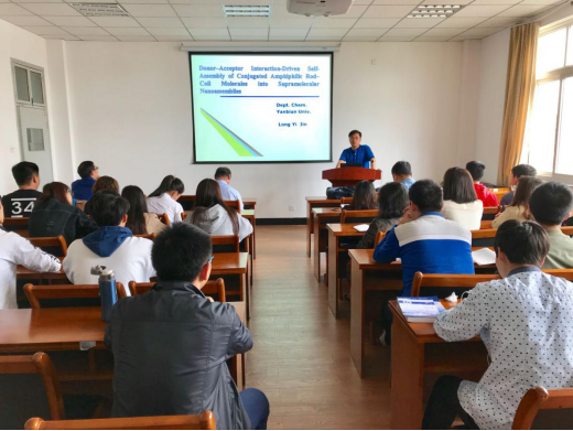 2018年5月8日上午,在梁林校区1号楼506学术报告厅,延边大学李东浩教授、金龙一教授来博彩app