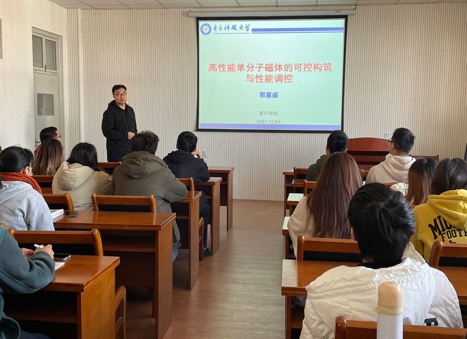 12月4日上午,应博彩app-亚洲博彩app 邀请,电子科技大学郭富盛教授一行来访,并作题为“高性能单分子磁体的可控构筑与性能调控”的学术报告。学院严政老师主持讲座,全院师生40余人到场聆听。