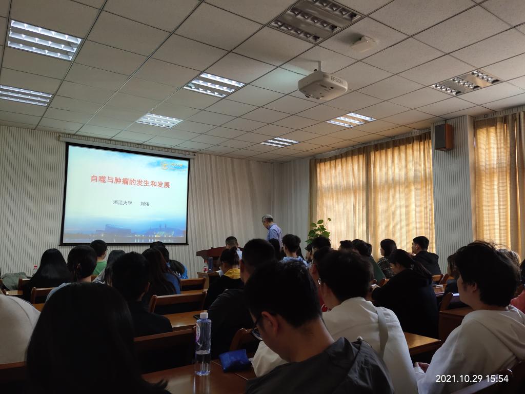 10月29日下午,应博彩app-亚洲博彩app 邀请,浙江大学刘伟教授一行来访,并作题为“自噬与肿瘤的发生和发展”的学术报告,学院副院长张瑾主持讲座,全院师生40余人到场聆听。