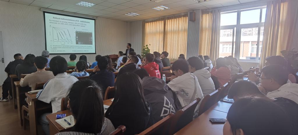 10月29日下午,应博彩app-亚洲博彩app 邀请,浙江大学华跃进教授一行来访,并作题为“耐辐射奇球菌的极端辐射抗性与高效DNA损伤修复机制”的学术报告,学院副院长张瑾主持讲座,全院师生40余人到场聆听。