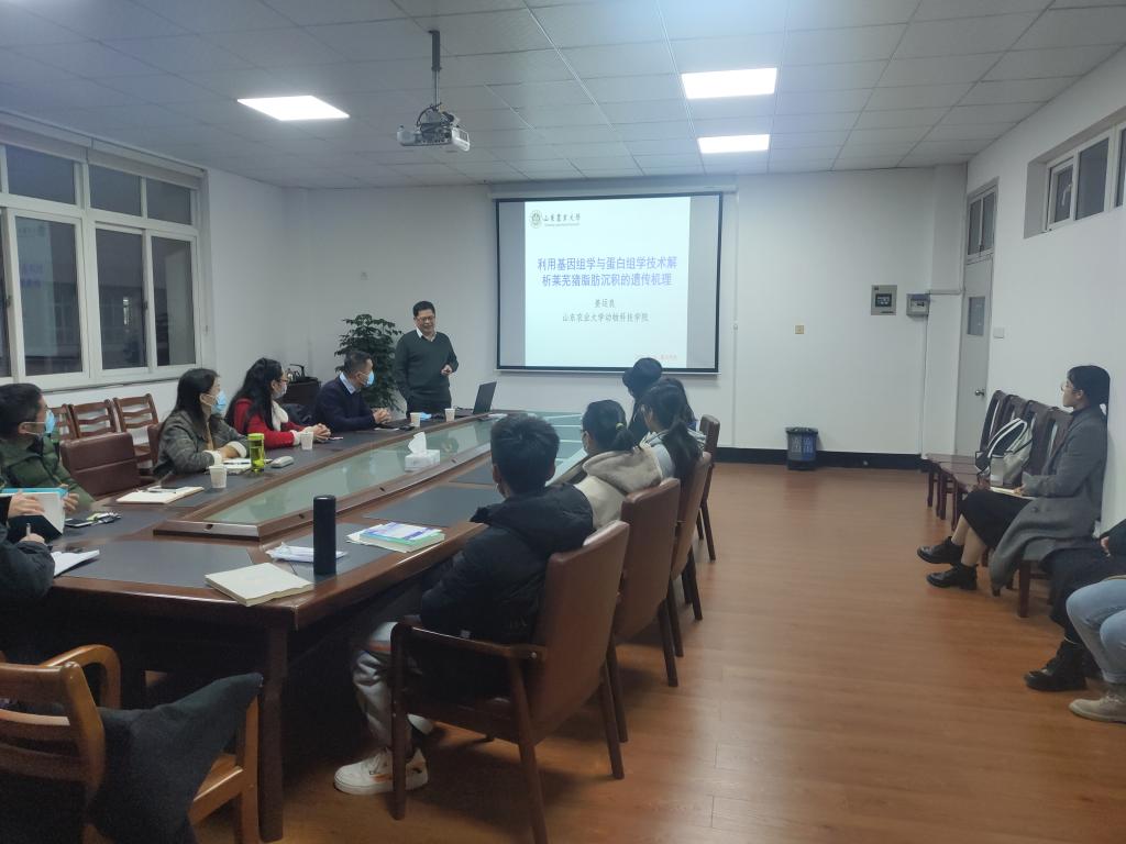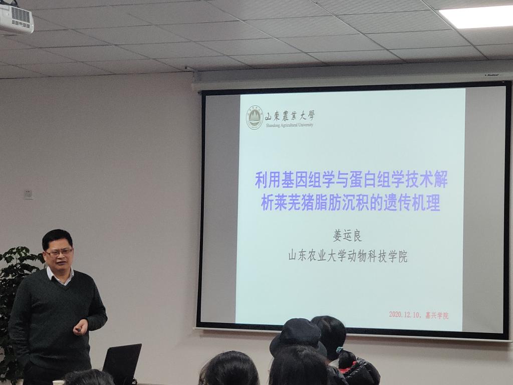 2020年12月10日下午,在梁林校区1号楼516学术报告厅,山东农业大学姜运良教授来博彩app 作题为《利用基因/蛋白组学技术解析猪脂肪沉积的遗传机理》的学术报告。