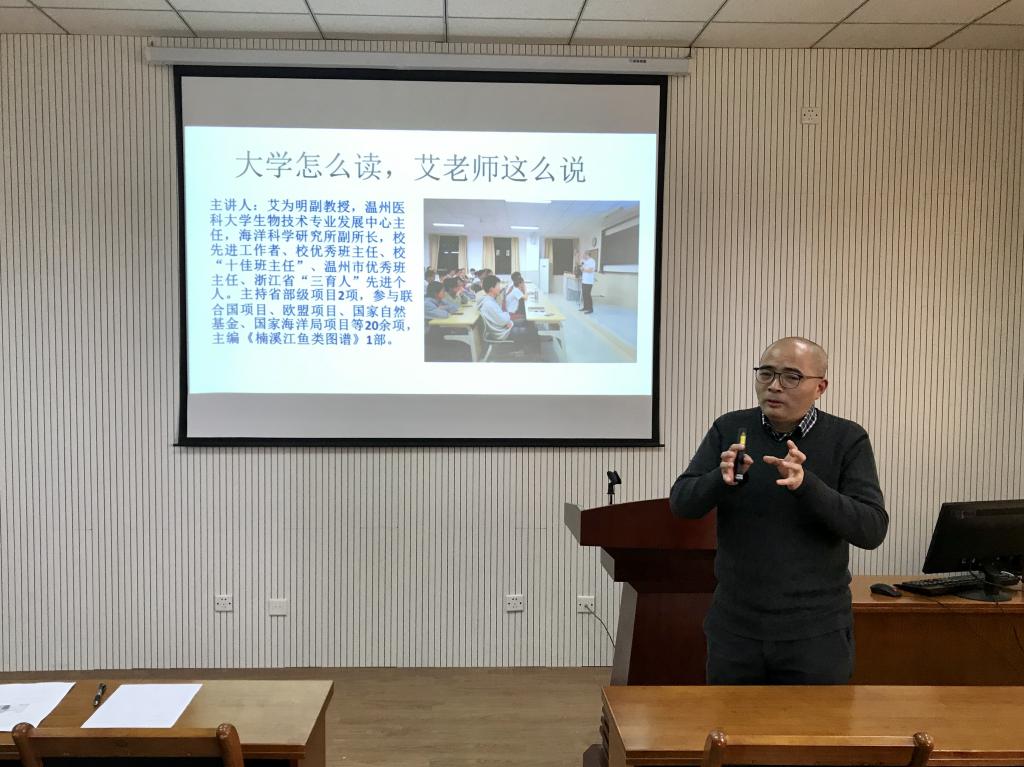 12月4日下午,温州医科大学生物技术专业发展中心主任海洋科学研究所副所长艾为明副教授来博彩app 作题为《大学怎么读,艾老师这么说》的学术报告。