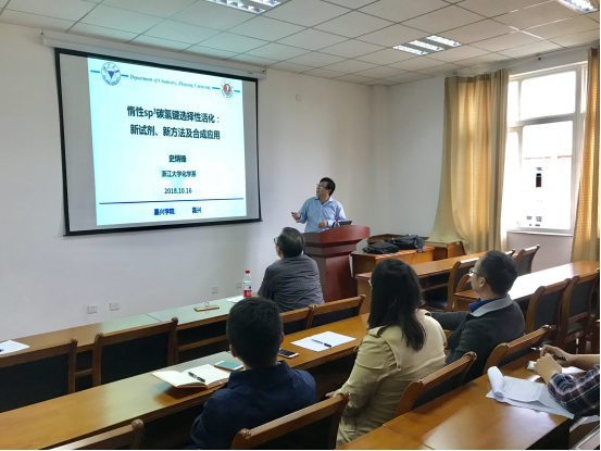 10月15日下午,在梁林校区1号楼506 学术报告厅,浙江大学史炳锋教授来博彩app 作题为《惰性sp3碳氢键选择性活化:新试剂、新方法及合成应用》的学术报告。