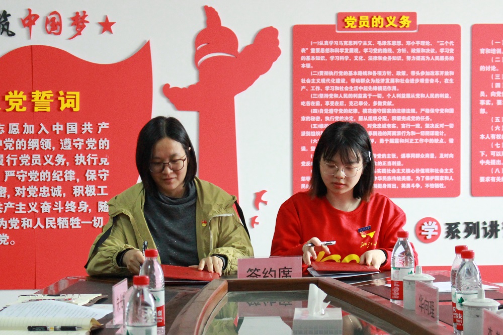 签约仪式后,双方教师党员、学生党员分别开展座谈交流、微党课学习交流,教师党员就如何发挥党建引领、助力学科专业发展进行了经验分享交流,学生党员围绕《做“中国饭碗”守护者》、《让历史发声,为当下起航》主题展示各自党支部特色活动。最后,双方党员进行“重走初心之路,点亮红色中国”横幅签名活动并合影留念,为双方后续常态化开展共建工作奠定了良好的基础。