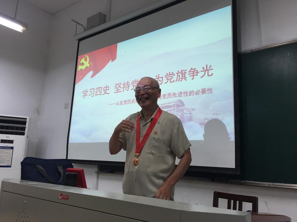 邀请“光荣在党50年纪念章”获得者、退休党员干部李志泉老师给学生党员讲授“七一”专题党课。学院党委书记杨丽娜主持,学工办辅导员和全体学生党员到场聆听。