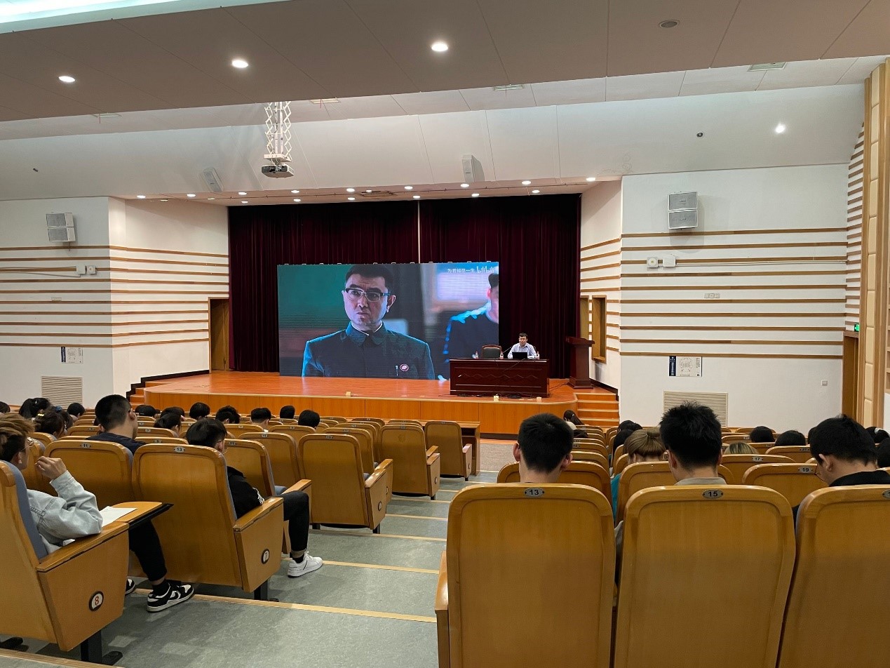 周博士通过对七一讲话中的十个关键词的提取和讲解,全面阐述习总书记“七一”讲话精神和丰富内涵,对同学们进行思想启迪和价值引领。关键词分别是庄严宣告、历史、伟大复兴、人民、伟大建党精神、坚持、不负、和平、发展、号召。周博士带领同学们回望历史,了解一百年来中国共产党的奋斗历程,对未来新征程的展望,中国一定会实现伟大复兴,最后提出了对新青年的要求,号召同学们牢记初心,坚定信念,艰苦奋斗,努力为党和人民作出贡献。在宣讲过程中,周博士通过加入一些红色影视视频片段来渲染氛围,丰富内容,极大的调动了同学们的热情。同学们认真的记笔记,展现了良好的精神面貌。最后,周博士还向大家推荐了一部红色影视作品《功勋》。
