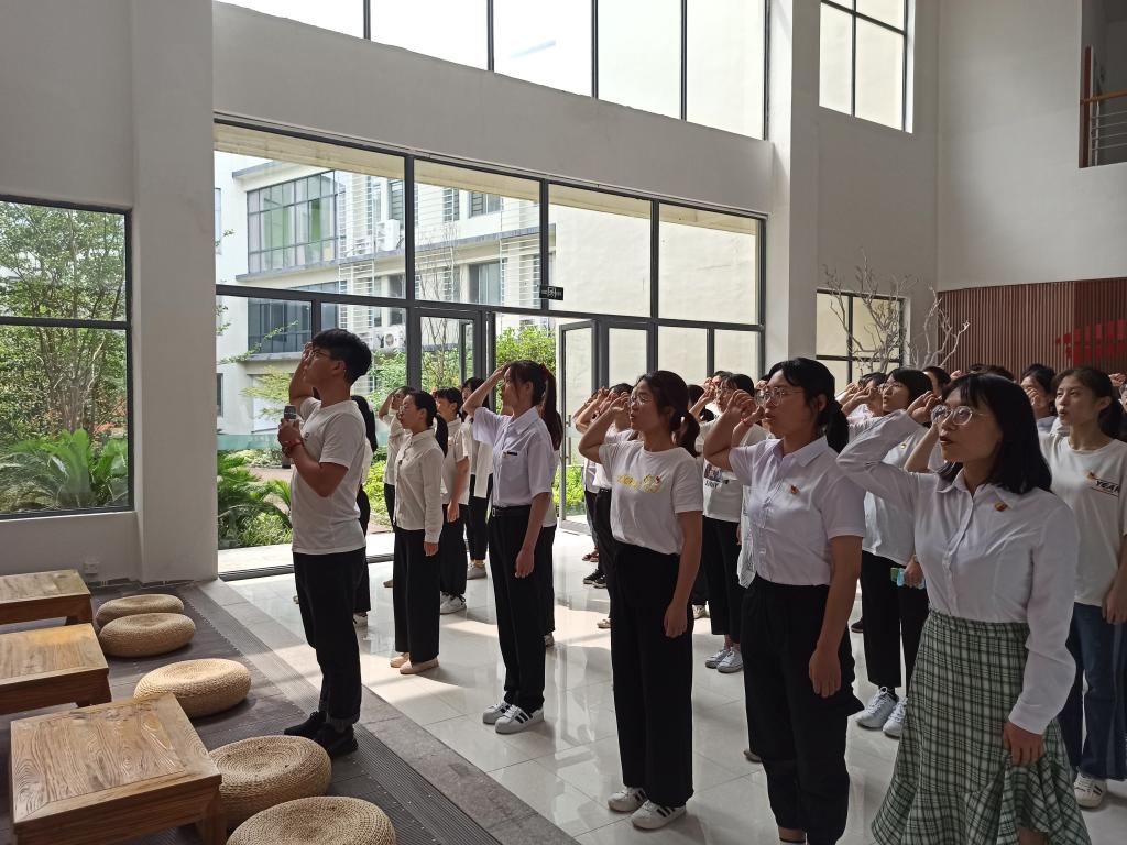 参加宣誓仪式的有今年新发展的学生和教师党员,以及去年的发展的预备党员共60余人。在庄严的国歌奏响过后,博彩app 学生党办主任周泉钱同学作为领誓人,带领全体党员面向国旗,举起右手,铿锵有力地宣读了入党誓词。随后,应化181班缪玲珊同学代表全体学生党员发言,表达了加入党组织的坚定立场,倡议学生党员要更以更加努力、务实和谦虚的作风,不断提升自己,多为社会做贡献。最后,博彩app 党委副书记蔡运男老师寄语广大新党员,希望他们永远记住这个神圣的时刻,激励自己终生践行入党誓言,为党的事业奋斗终身。