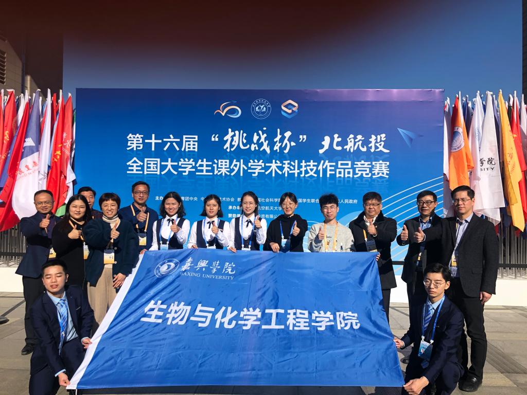 由李加友、翟志才、王泉庆三位老师指导的《秸秆生物质板的智能化生产系统集成及产品应用》项目,荣获国赛一等奖,参赛学生为:杨鹏黄玄玄李娟娟蒋泽锋杨晓婷钱丽君倪凯旋罗杰;由邱观音生、郭丽萍两位老师指导的《含苯并杂环骨架的类天然产物的创新合成及化合物库的构建》项目,荣获国赛二等奖,参赛学生为:郑滟男李震刘梦丽王琨俞丽张雅晶李梦董温碧李嘉霓。