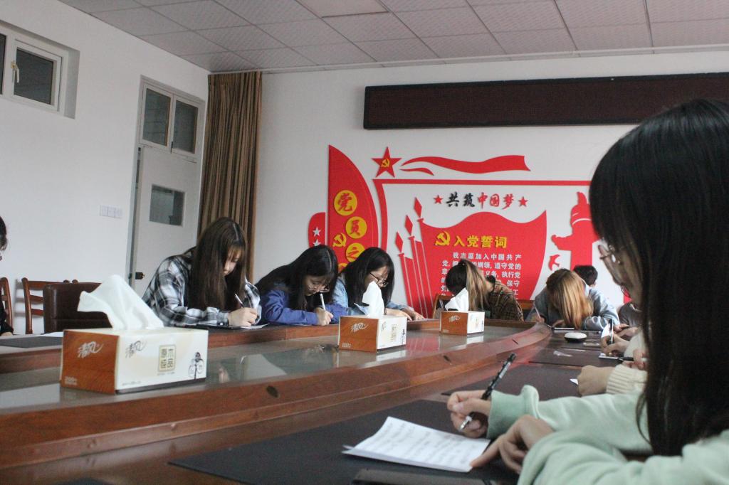 在大会正式开始之前,进行了重温入团誓词和佩戴团徽活动。会议开始后,全体同学与国家领导人一同起立,高唱国歌,随后,习近平总书记发表重要讲话。对于广大青年同志总书记提出了六点要求:新时代中国青年要树立远大理想要热爱伟大祖国要担负时代责任要勇于砥砺奋斗要练就过硬本领要锻炼品德修为。习总书记对中国青年的殷切期望激发了在场的同学的奋斗热情。