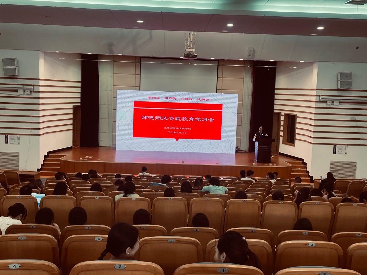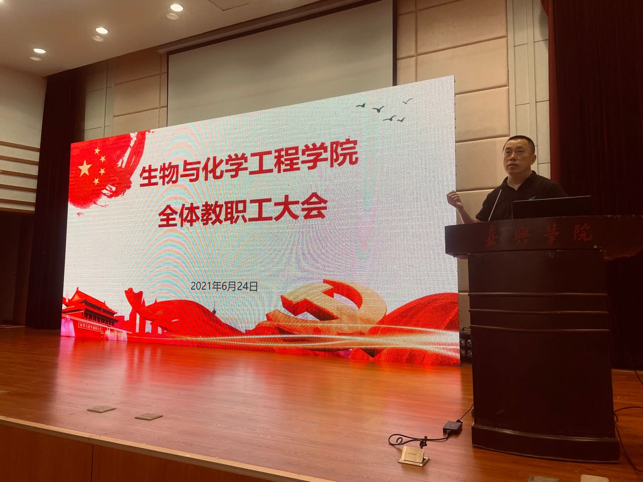 6月24日,博彩app-亚洲博彩app 召开全体教职工大会暨师德师风专题廉政教育大会。院党委书记杨丽娜主持会议,全体教职工参加会议。