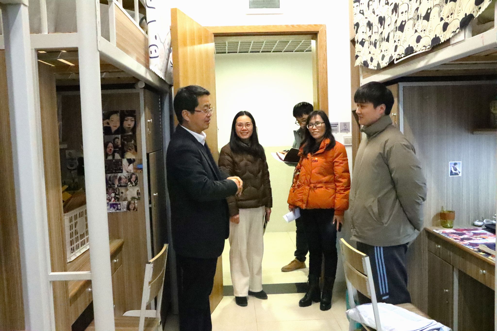 下午,於建明来到博彩app 研究生和本科生寝室,与返校学生亲切交流,“寒假过得怎么样?”“新学期有什么规划?”“对学校和学院有什么意见建议?”......勉励广大同学在新学期静下心学习、沉下心思考、潜下心科研,在南湖畔的嘉兴大学收获更多成长。
