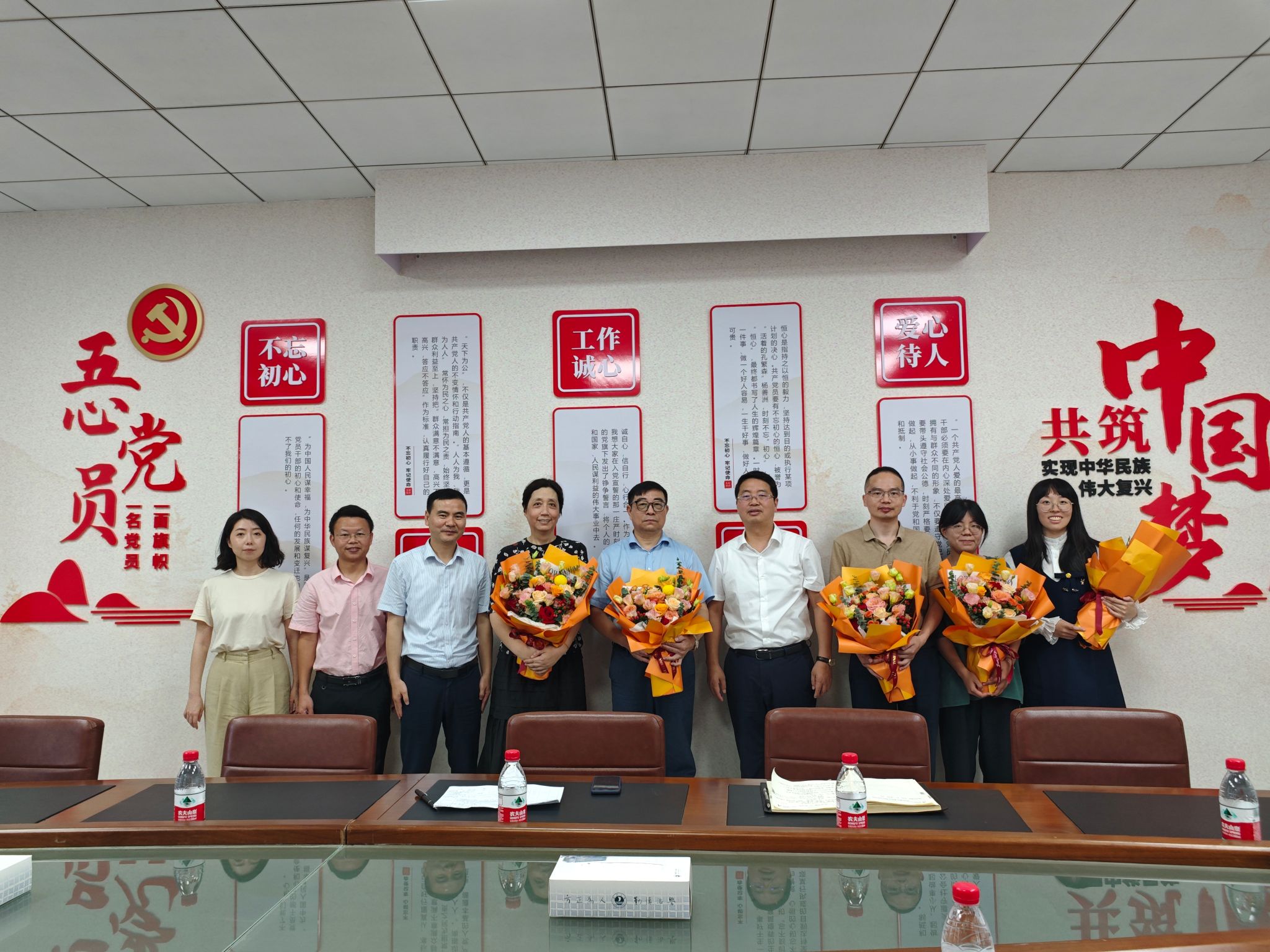 於建明副校长为李蕾、程琼、王燕刚、计嘉琳、潘样丹等5位教师代表送上鲜花,和大家进行了亲切交谈。他详细了解了教师代表们的教学科研和生活等情况,对他们取得的成绩和对学校学院发展做出的贡献表示肯定和感谢,他鼓励老师们继续做好教学科研工作,加强科学研究,为学院学校高水平建设、高质量发展做出更大贡献。