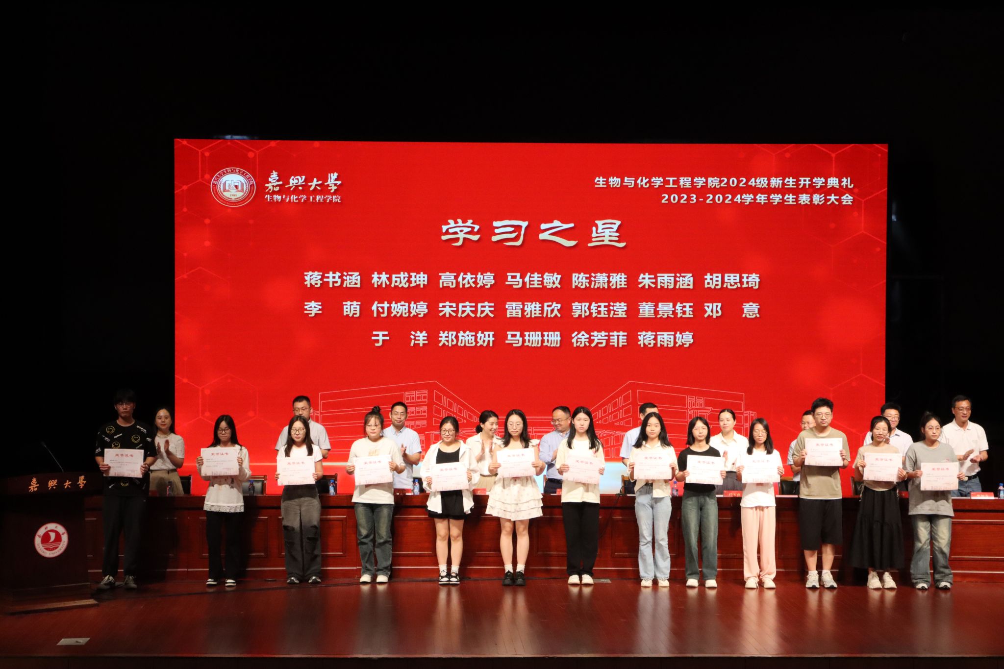 典礼还对2023-2024学年在学习、科研、竞赛、社会工作等方面取得良好成绩的优秀学生集体和个人进行了表彰。55个学生科研项目团队、19名学生、35名学生干部、4个学生寝室分别荣获“学科竞赛优秀团队”“学习之星”“优秀党团干部”“优秀寝室”等荣誉称号,激励更多学生学习榜样、成为榜样。