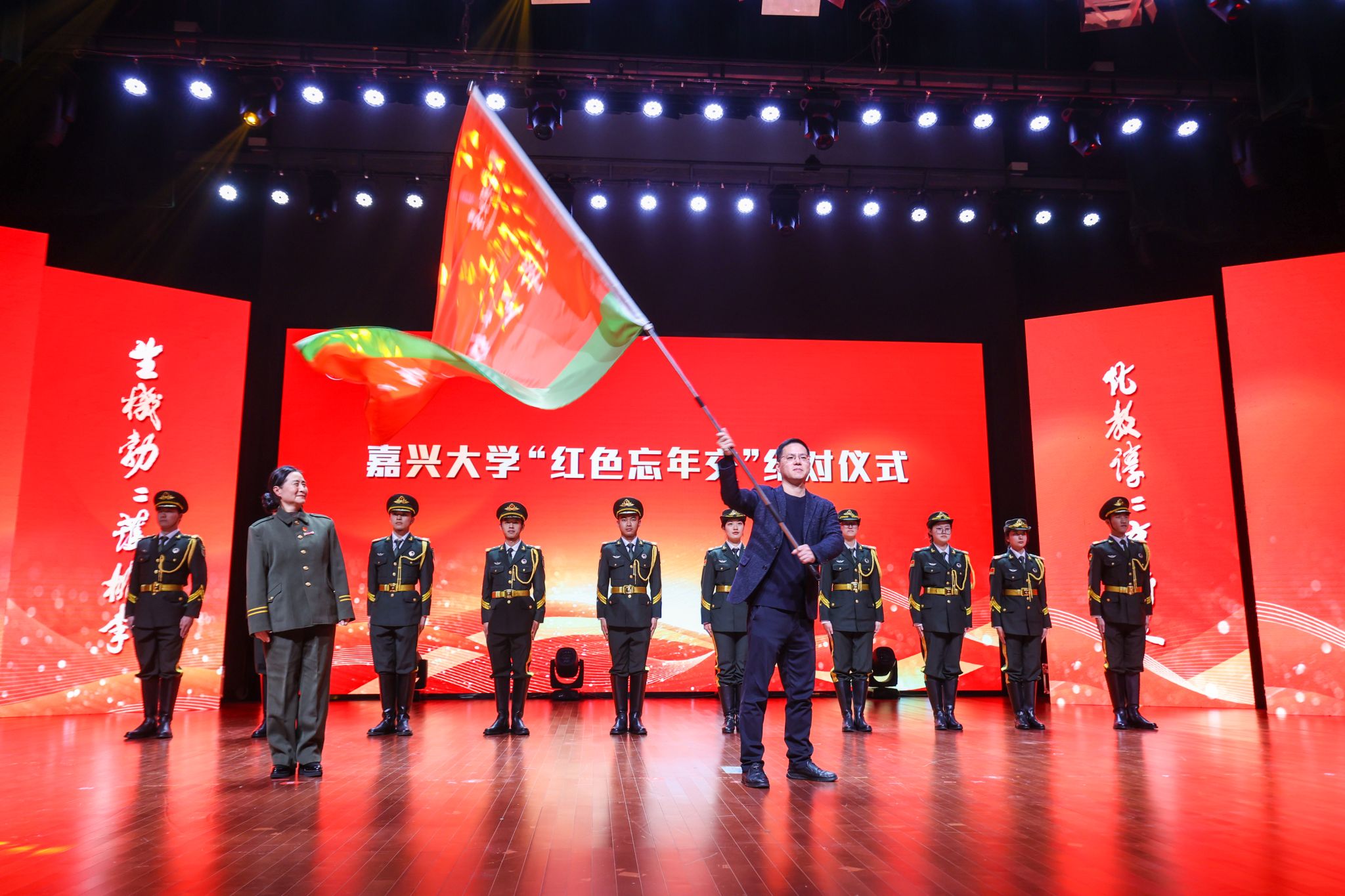 党委负责人为嘉兴市新四军历史研究会宣讲团的老同志颁发了校外辅导员聘书;张红宇为嘉兴大学大学生“红军连”授旗。