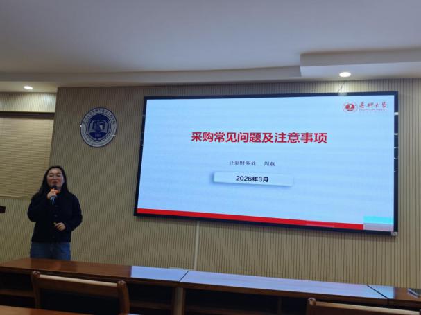 培训中,钟若菲老师围绕公务接待管理、科研经费管控、差旅费报销、劳务费发放规范及日常账务核算常见问题等内容展开细致讲解;周燕老师针对采购工作高频问题、关键流程与合规注意事项进行系统阐释。互动环节,参会教职工结合实际工作疑点难点,向两位老师现场咨询交流。