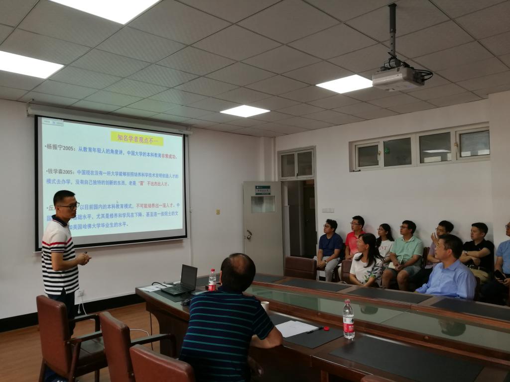 朱连文老师以自己2018年赴美佛罗里达州立大学访问交流的亲身经历为切入点,以采访美国当地教师和中国访问学者为依据,主要从“四十年前的预言”、“中美教育比较”、“中美课堂教学模式比较”、“教学反思”四个方面讲述了中美目前教育模式的区别。朱老师的演讲有理有据、丝丝入扣,并且字里行间包含了自己对问题的深刻思考。他在讲座中也反复指出,中美教育模式的差别是在长期历史条件下形成的,不存在绝对的对错,但可以选择性借鉴、取长补短。