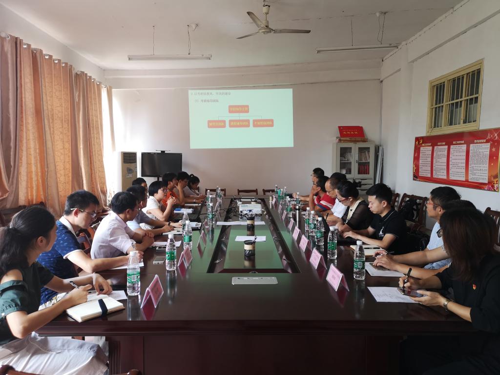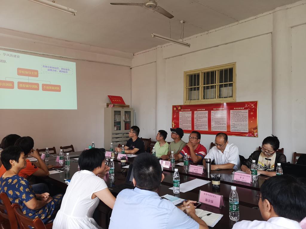 化学与环境科学学院院长叶青教授以及各教研室主任、专业负责人就学院的办学特色、学科竞赛、科研立项、学生考研等方面办学成就进行了介绍,随后双方就该院开展审核评估工作推进情况、评估的经验做法作了交流,重点对本科教学审核评估材料收集、整理及自评报告的撰写等方面进行了梳理,双方还就审核评估的重点内容,进行了深入交谈。座谈后,更加明确了博彩app 各部门在评估过程中所需承担的职责。