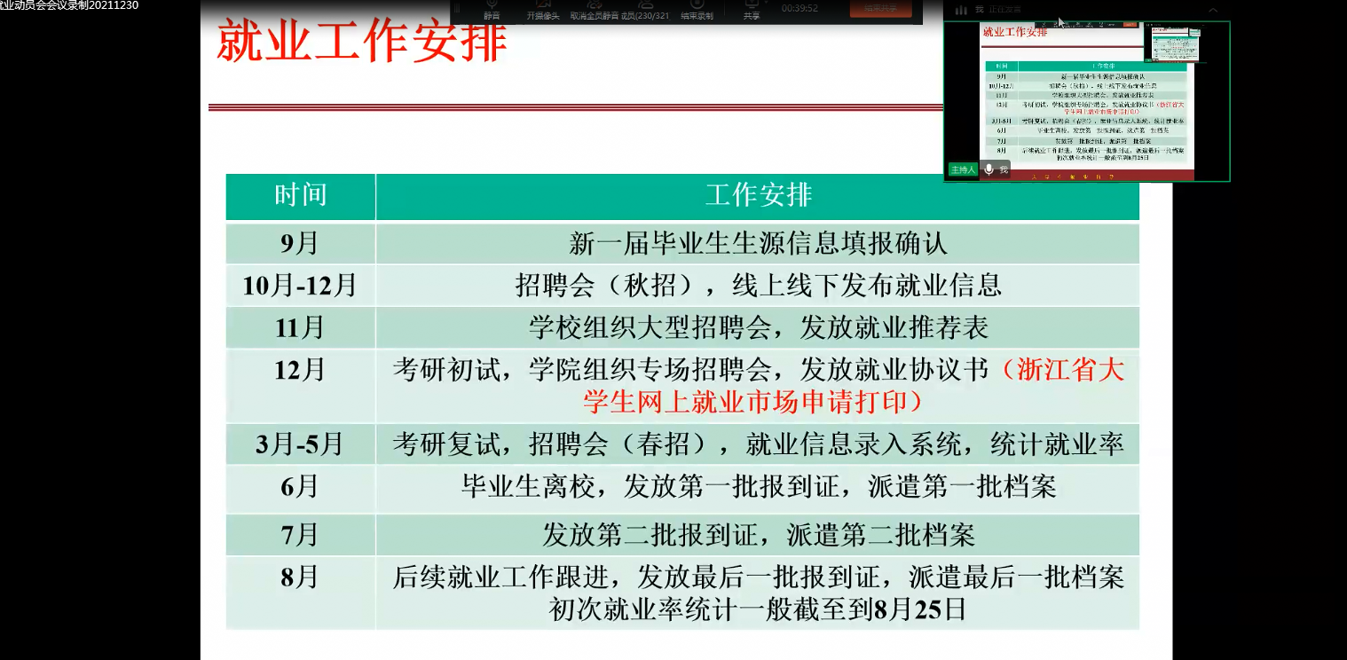 2021年12月30日中午12:30,博彩app 通过线上会议形式召开2022届毕业生就业动员会,博彩app 党委副书记蔡运男老师、学工办辅导员潘佳豪老师以及2022届全体毕业生参加了本次会议。