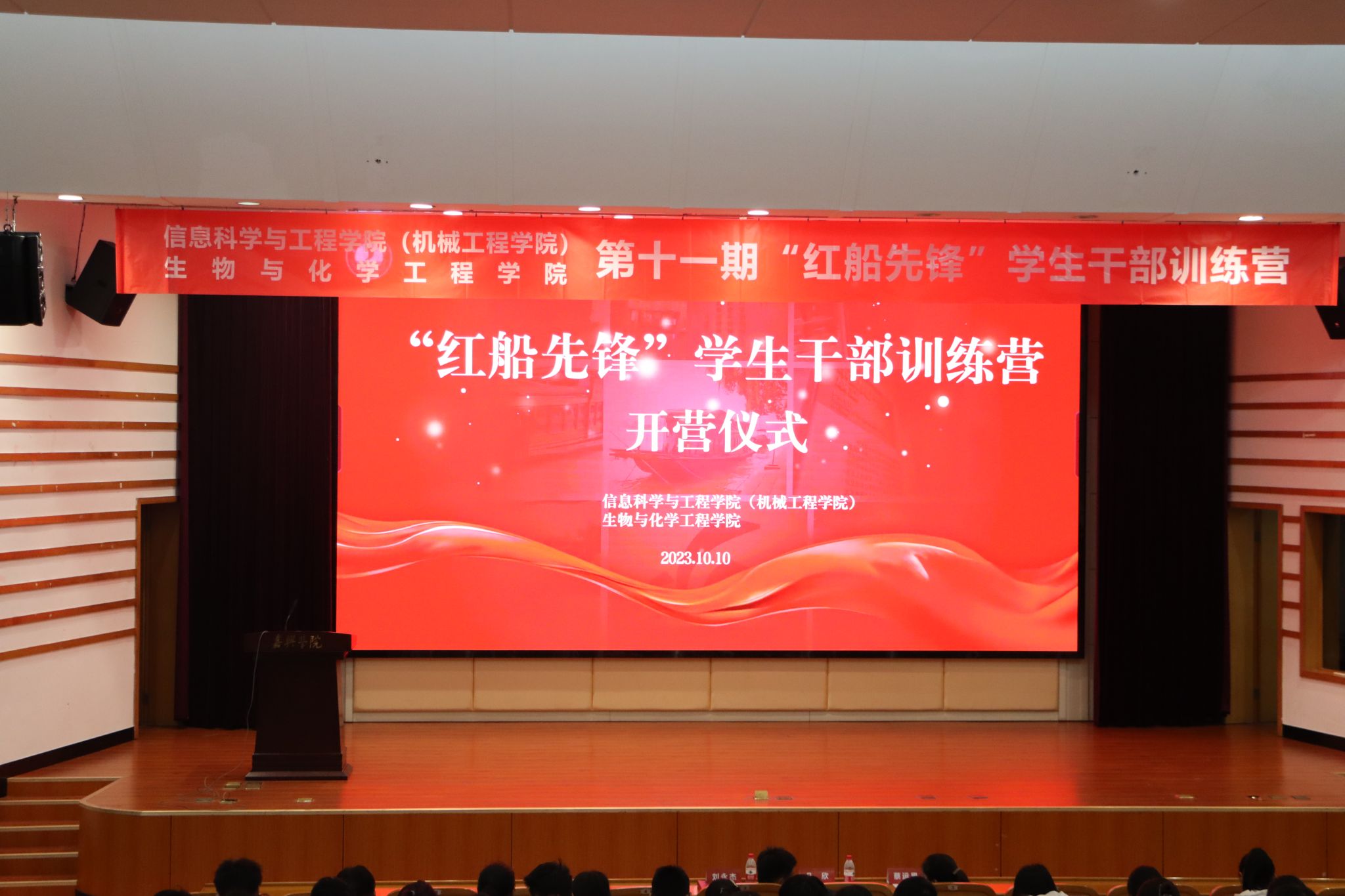 108日晚,信息科学与工程学院(机械工程学院)、博彩app-亚洲博彩app 第十一期“红船先锋”学生干部培训营开营仪式暨课程第一讲于梁林校区一期TCL报告厅举行。校团委副书记刘永杰、信息科学与工程学院(机械工程学院)党委副书记凡欣、博彩app-亚洲博彩app 党委副书记蔡运男、两院教师团干部及主要学生骨干100余人共同参加了此次活动。