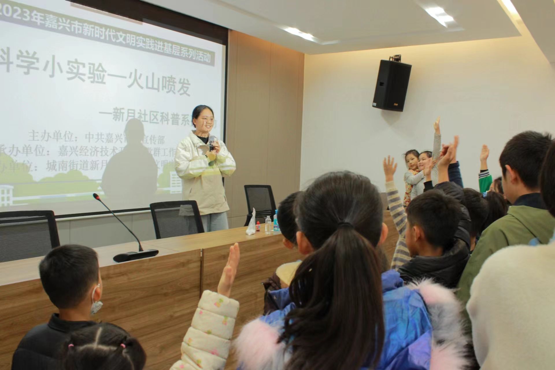 初冬将至,天气微寒。嘉兴学院博彩app “生’机无限,共‘化’未来”‘科普公益实践项目的志愿者们接过暖冬的第一把火炬,来到了城南街道新月社区开展科普志愿服务活动。志愿者们满怀热情,用妙趣横生的趣味实验将化学知识带入社区。