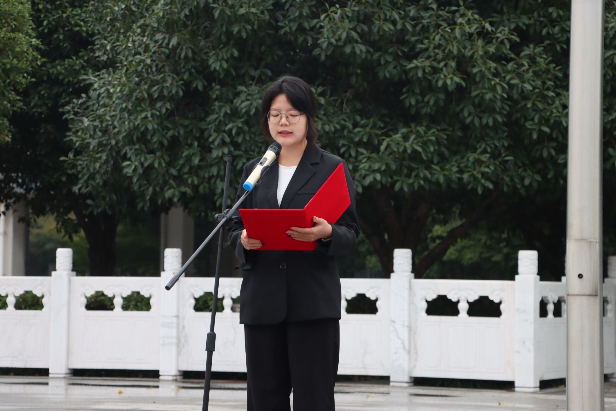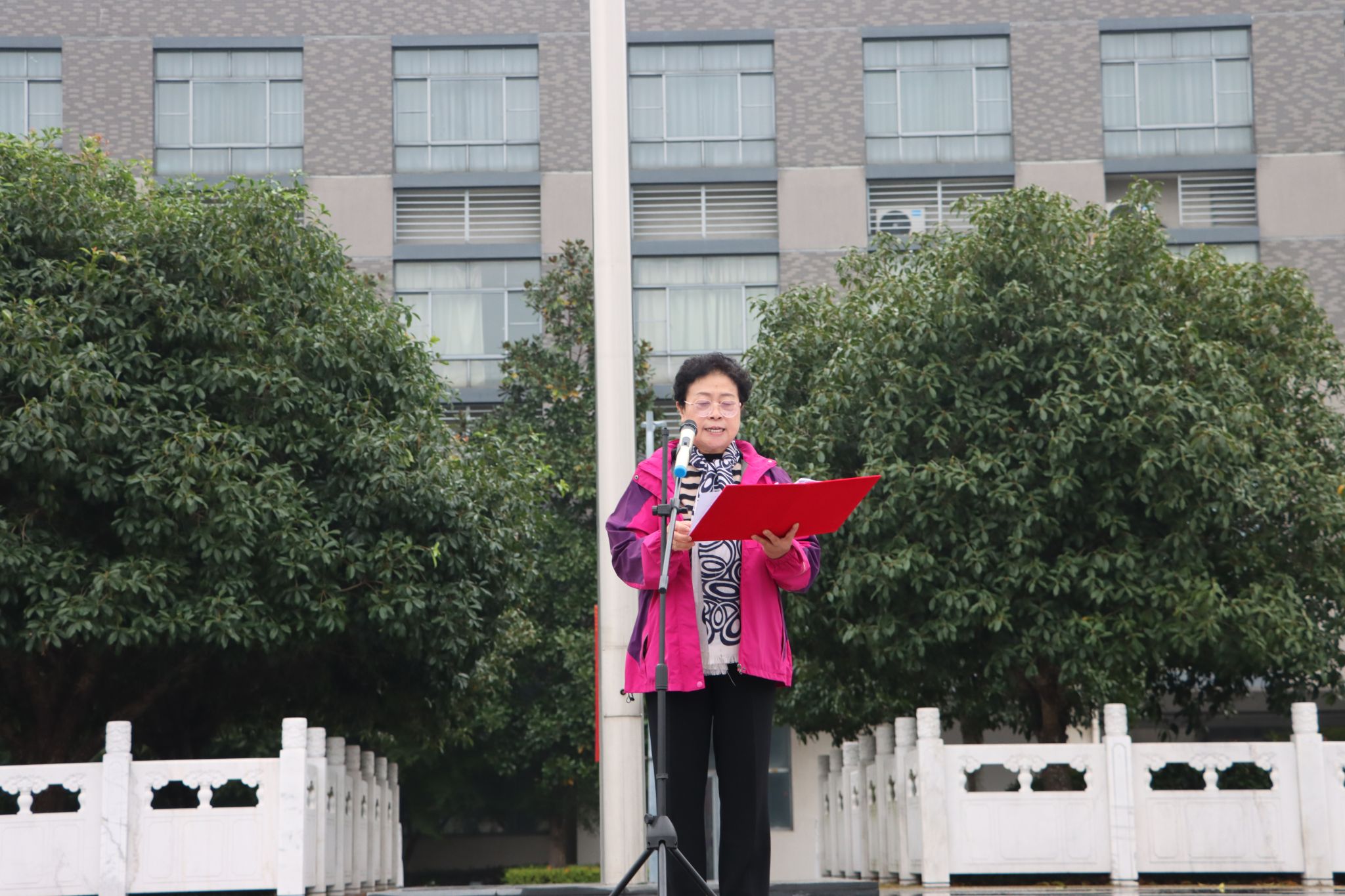 嘉兴市新四军历史研究会顾问、嘉兴学院党委副书记唐瑞娥老师作国旗下讲话,她表示,升国旗是每一位中国人的一种信仰、一种精神、一种力量。作为一名老党员、老教师,也作为同学们的“忘年之交”,她希望同学们热爱伟大祖国要始终心系祖国,坚定信念,用实际行动践行对祖国的热爱。二传承红色基因作为红船旁高校的学子,要将传承红色基因作为自己的责任和义务,接过前人的火炬,在洞察历史的视野中,锚定成长方向,坚守成长道路,把青春贡献给祖国的伟大复兴事业。三砥砺报国之志个人命运与国家命运紧密相连,站在中华民族伟大复兴的历史转折点上,立志做有理想、有本领、有担当的时代新人,不懈奋斗、担当有为,为中华民族的伟大复兴注入青春力量。