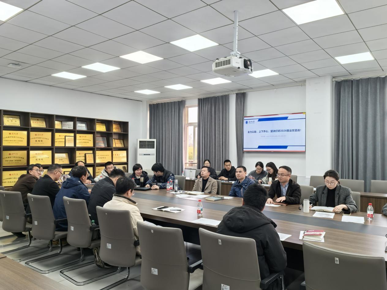 本次就业升学工作推进会,是学院构建“党政统筹—学工牵头—专业联动—导师参与”全员化就业工作体系的关键一步。接下来,学院将以此次会议为契机,持续完善形势研判与政策响应机制,压实各方职责,汇聚全院合力,全力以赴助力2026届毕业生更充分、更高质量就业。