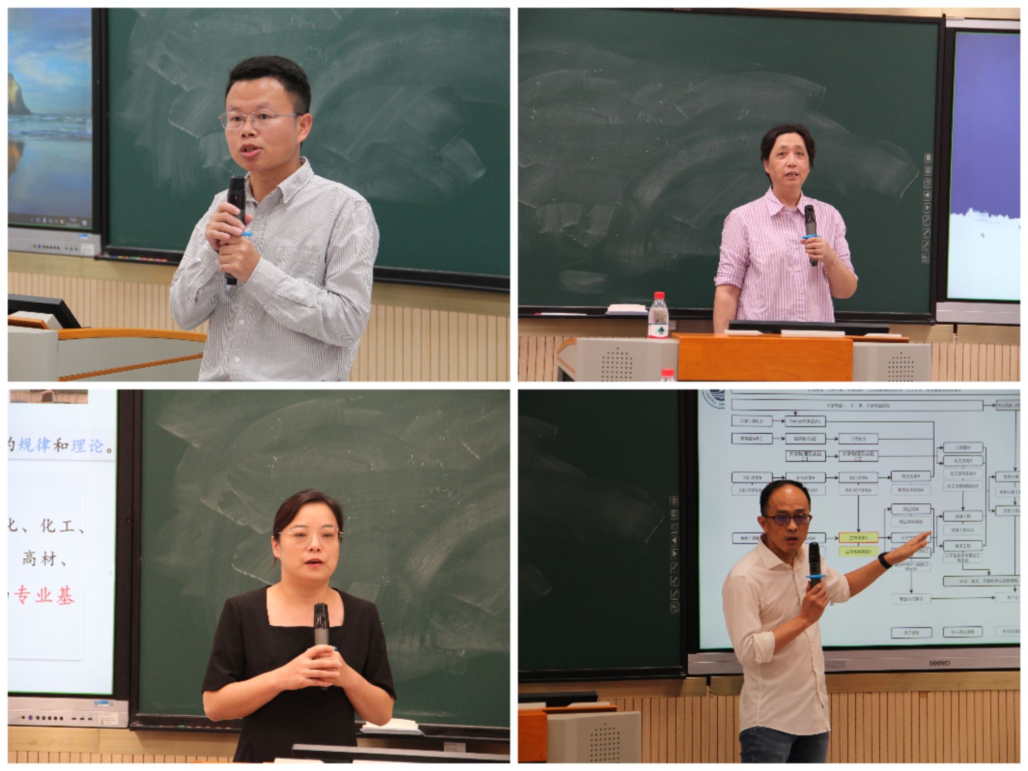 物理化学课程组负责人郭丽萍结合省一流课程《物理化学》的建设经验,分享了关于课程建设的若干思考。她强调指出,物理化学作为四大基础化学课程之一,课程学习内容相对较难,该课程组在《物理化学》课程实施过程中创新采用了“项目驱动式”习题“微课”、课堂“微测试”等教学改革措施,有效提高了学生参与的主动性和自主性,实现了学生从“要我学”到“我要学”的转变,以此达到素质教育的目标。